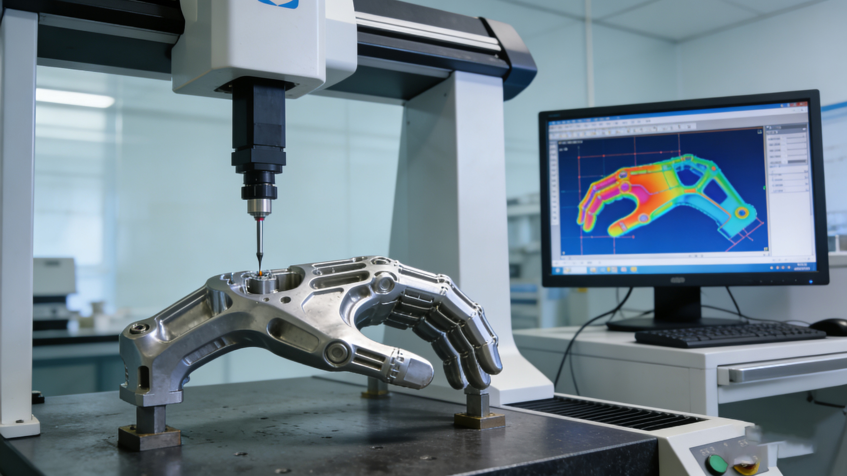 图1:使用高精度三坐标测量机对精密手板进行全尺寸检测,确保微米级精度